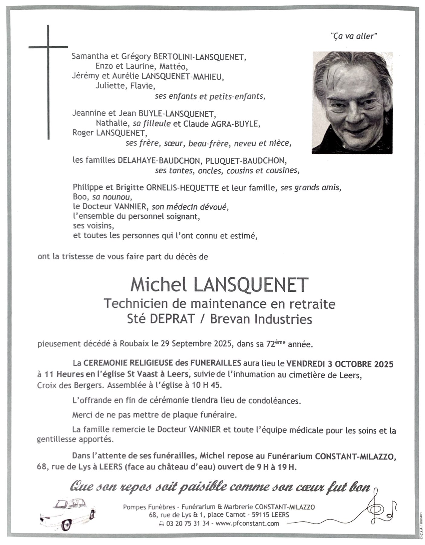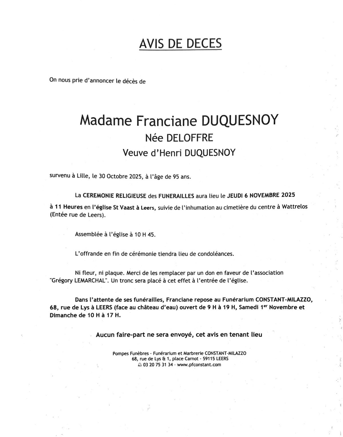 Déposez votre message de condoléances dans l’espace dédié à cet effet, nous le transmettrons à la famille.